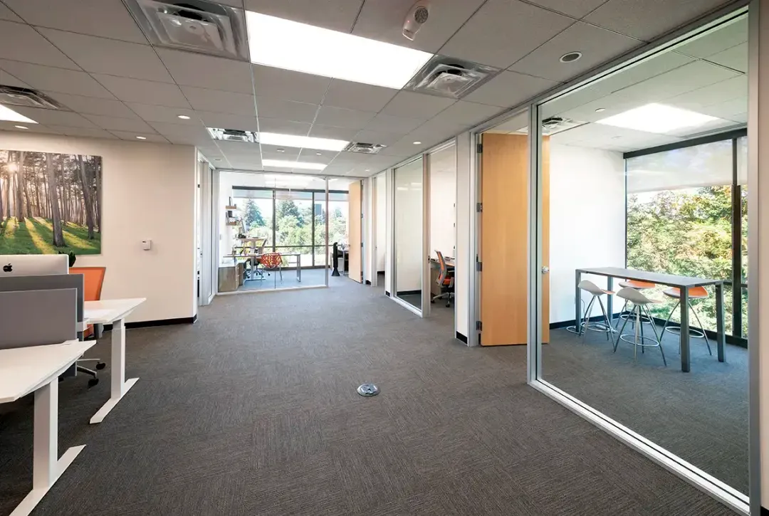 Fully renovated, modern office building, features timeless design and exceptional finishes. A dramatic two-story lobby with expansive stairwell and prominent building entrance on Hamilton Avenue provides excellent street presence and identity. LEED certified, with WELL Health-Safety Rating.